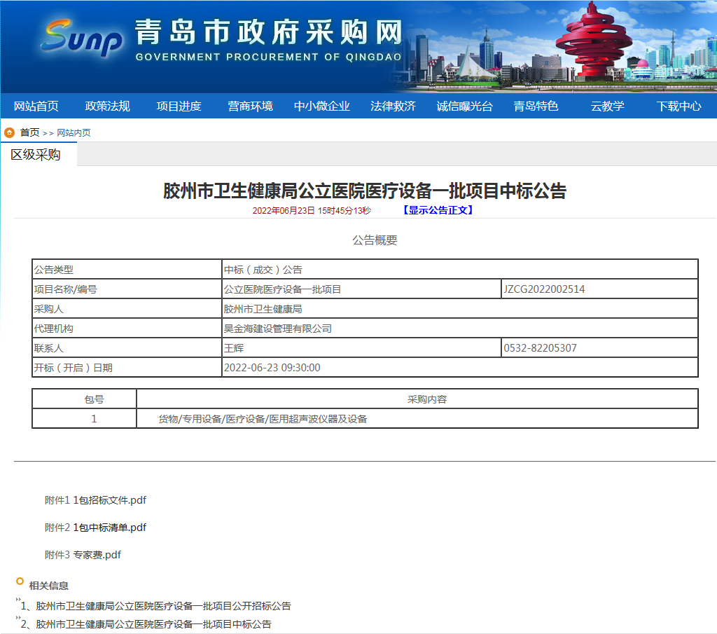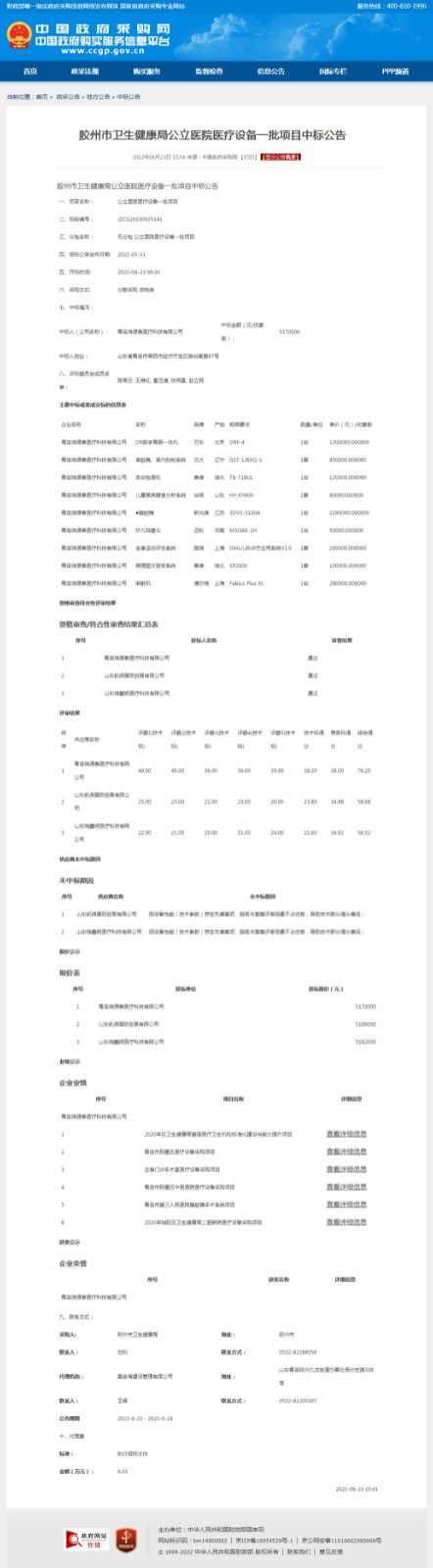 泰維產(chǎn)品中標(biāo)膠州市衛(wèi)生健康局公立醫(yī)院